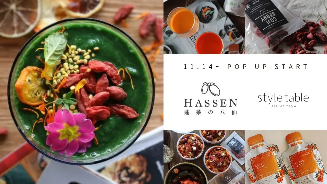style table代官山本店は、有機・オーガニッククコの実製品を初めて開発、発売したブランド「八仙」とのPOP UPイベントを開催します。